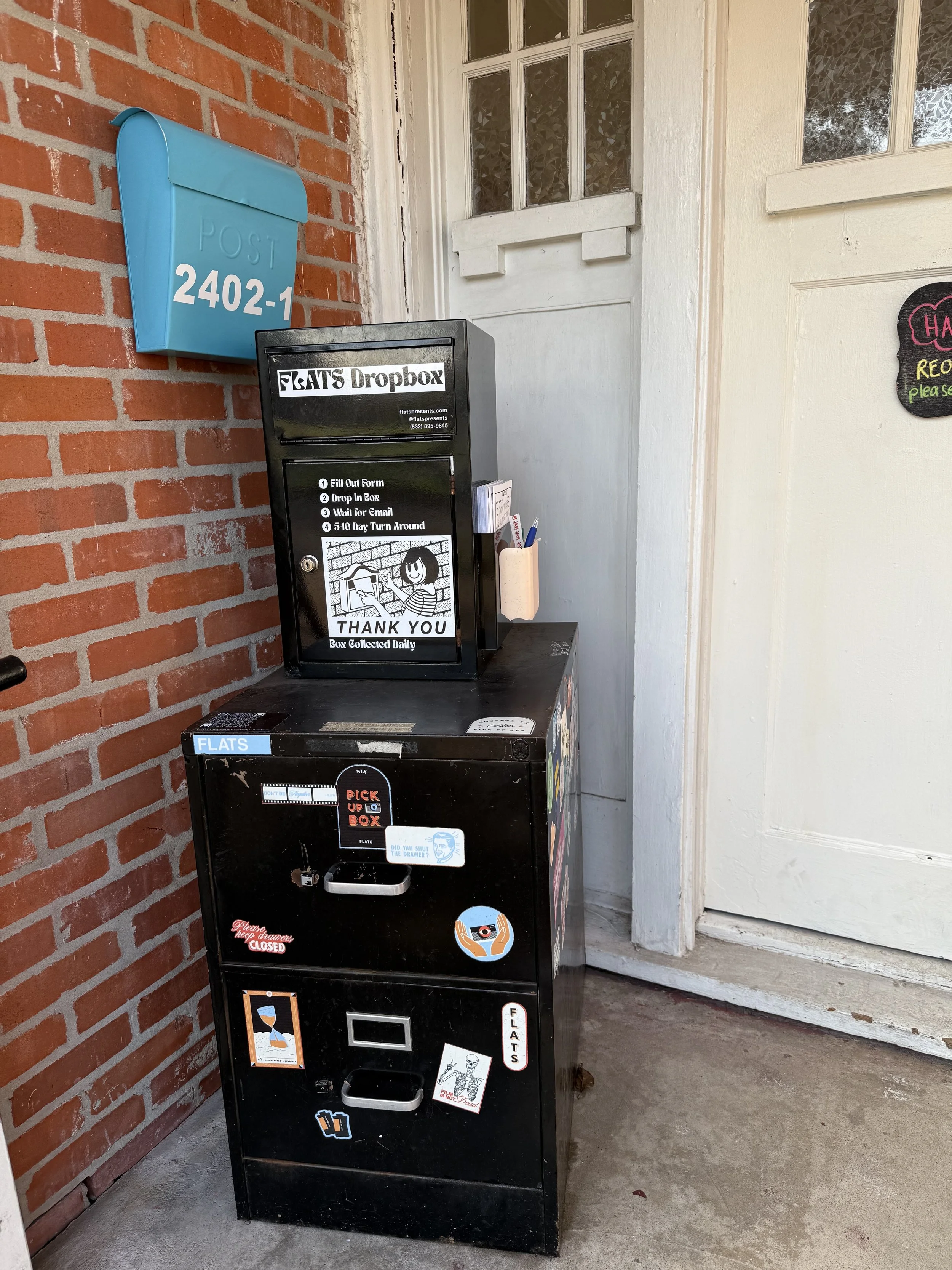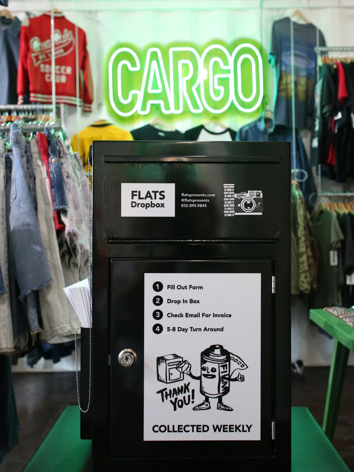 For your convenience we have a 24-hour drop-off box. Located at FLATS Lab - 2402 Montrose